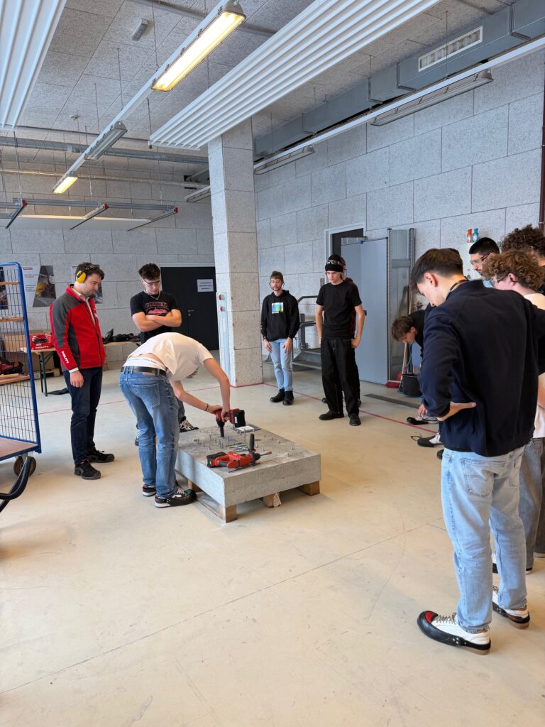 – Hands-on-Erfahrung: Beim praktischen Teil durften die Schülerinnen und Schüler selbst aktiv werden: Verschiedene Bohrmaschinen und Geräte konnten getestet werden, um ein Gefühl für Technik, Ergonomie und Leistungsfähigkeit zu bekommen.