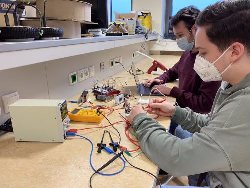 Weiters soll unser Projekt als Basis für Weiterentwicklungen in diesem Bereich dienen. Auf dem Bild sieht man die Validierung und Programmierung einer neu entwickelten Platine.
