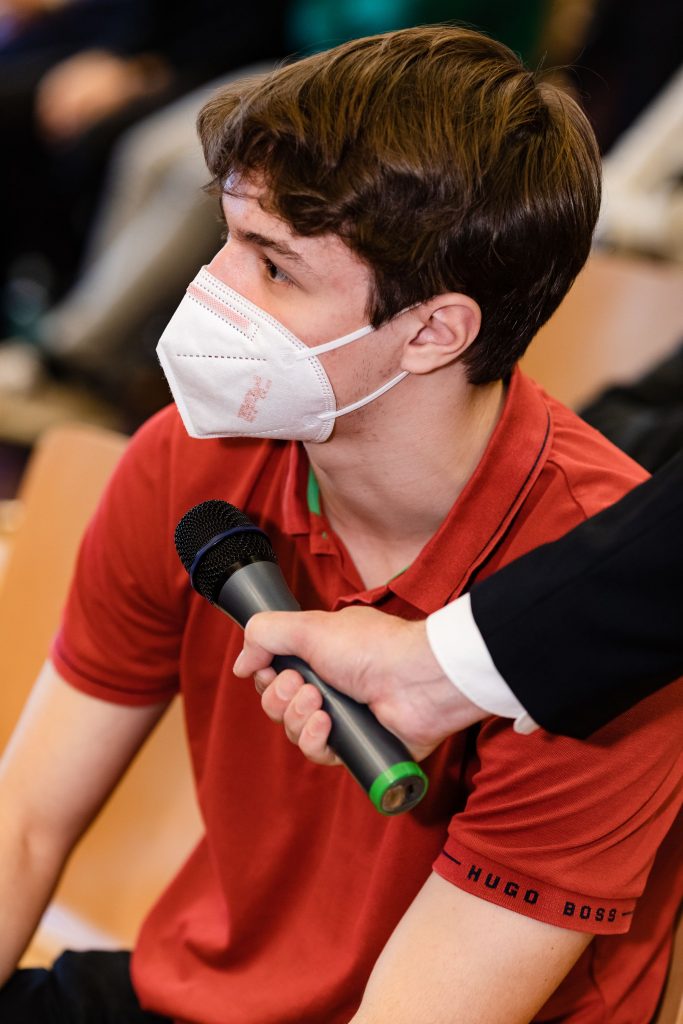 CEO Andreas Matthä zeigte zu Beginn in einer kurzen Präsentation den jungen Techniker*innen die wesentlichen ÖBB Entwicklungen und Zukunftspläne im Personenverkehr, Infrastruktur und Schienengüterverkehr auf, „Bereits jetzt fahren in keinem anderen Land der EU mehr Menschen pro Jahr mit der Bahn, wie in Österreich. Auch beim Güterverkehr sind wir als Nummer 2 in Europa ganz vorne mit dabei.“ betonte Matthä. Im Vor-Coronajahr 2019 nutzen 477 Millionen Reisende die Angebote der ÖBB mit Bahn und Bus bzw. beförderte die ÖBB Rail Cargo Group über 100 Mio. Tonnen/Jahr. Ein wichtiger Punkt in der Diskussion war auch der Klimawandel und die Rolle der Bahn – „Die Bahn ist die Antwort auf die Klimakrise“. Die ÖBB sparen jährlich rund 4,2 Mo. Tonnen CO2 ein. Zur Erreichung der Klimaziele der EU bis 2050 bzw. Österreichs bis 2040 müssen vor allem mehr Güter mit der Bahn transportiert werden. „Wir brauchen eine Verkehrswende. Weniger Straßen- dafür mehr Schienengütertransporte! Schließlich ist die Bahn gegenüber dem Lkw wesentlich nachhaltiger.“ unterstrich Matthä. Damit die Verkehrswende gelingt, investieren die ÖBB in die Infrastruktur so viel wie noch nie und werden bis 2040 die Leistungsfähigkeit auf der Schiene in Österreich verdoppeln. Allein das in der Geschichte Österreich größte Investitionsprogramm von 18,2 Mrd. Euro von 2022 bis 2027 unterstreicht die rot-weiß-roten-Ambitionen; kein Land in der EU investiert derzeit mehr pro Kopf in die Bahn!